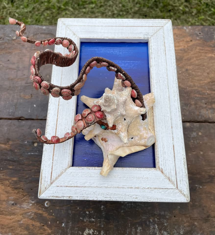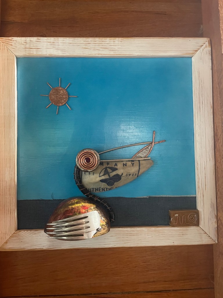 Made from recycled electrical wire, old saw blades, bottle stoppers…whatever we find!