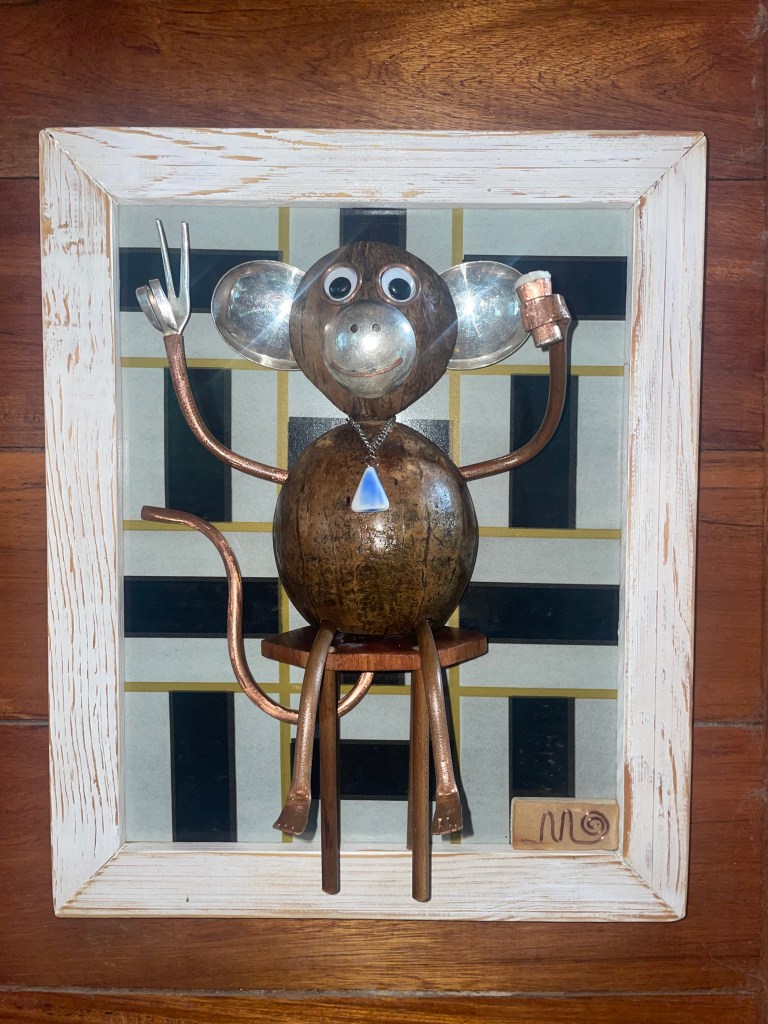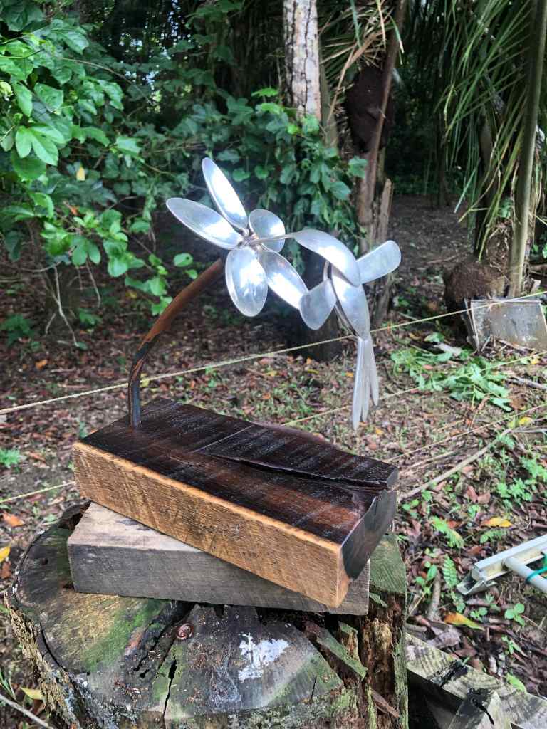 Made from recycled electrical wire, old saw blades, bottle stoppers…whatever we find!